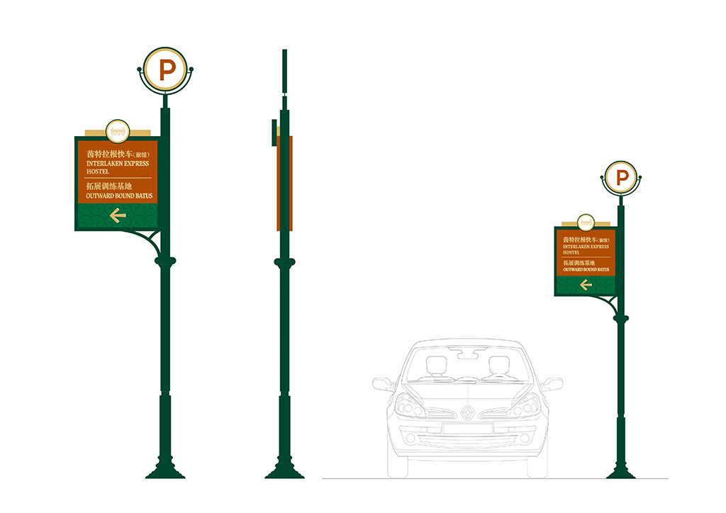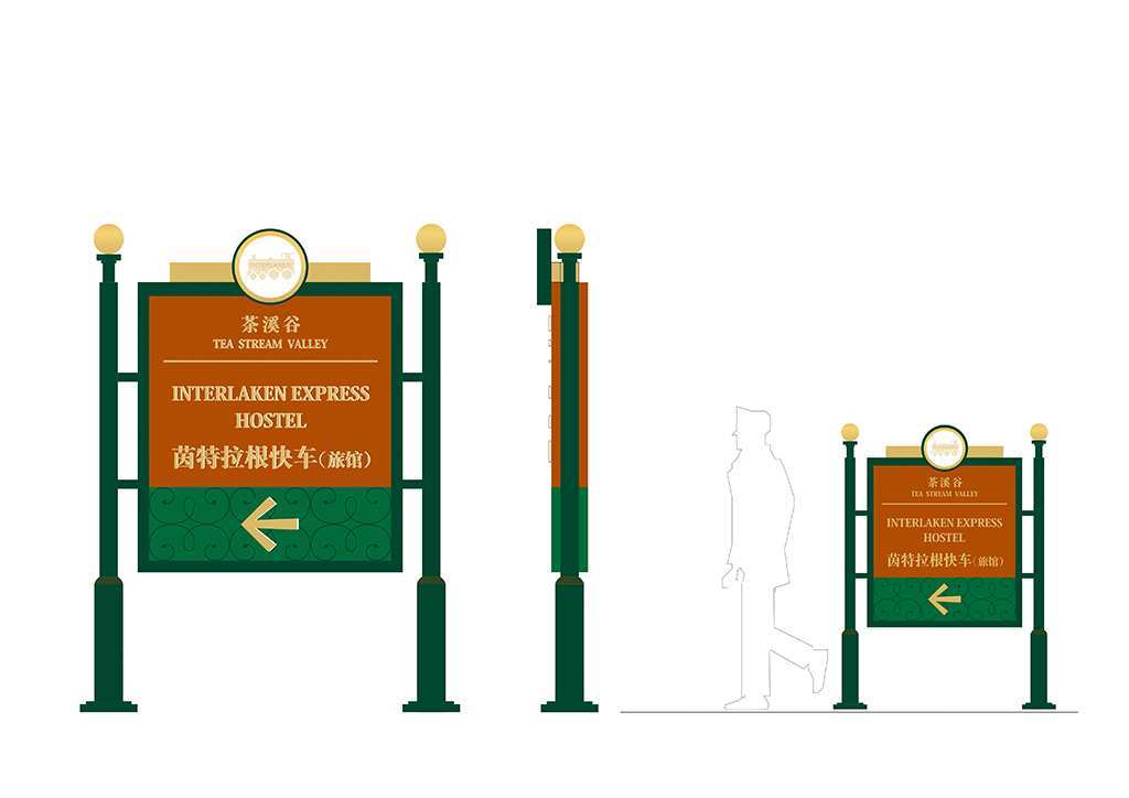 深圳茵特拉根快车旅馆导示系统设计元素由树枝、火车演变而来.整个设计充满了小镇的古朴典雅与休闲情调,导示设计主旨以静谧